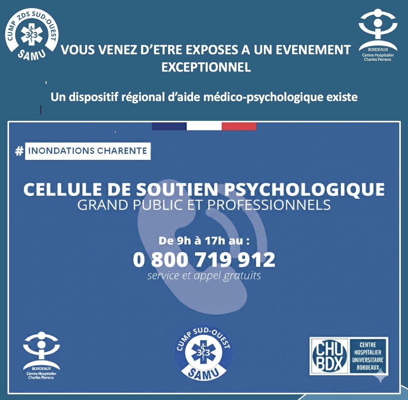 - Les partenaires en santé de la Charente ont, face à la crise COVID19 et à la situation de confinement, créée une cellule locale d’écoute psychologique de premier recours qui sera fonctionnelle dès ce mercredi 25 mars à partir de 13h. Cette cellule s’adresse à tous les charentais, indépendamment de l’âge et a pour objectif de rompre avec l’isolement des personnes confinées.Nous avons donc sur la base du numéro unique de la Plateforme Territoriale d’Appui ainsi que des personnes/partenaires volontaires, mis en place cette structure d’écoute.Le principe est simple :L’usager en situation d’angoisse appelle le 0 809 109 109 entre 9 h et 17 h ;- Un premier rendez-vous téléphonique avec un écoutant (infirmier ou psychologue à ce jour) lui est proposé ;- En fonction de sa problématique et suite à cet entretien, la personne 😮 Trouve une écoute suffisante qui répond à son angoisse ;o Est réorientée vers une structure adaptée pour un suivi à plus long cours